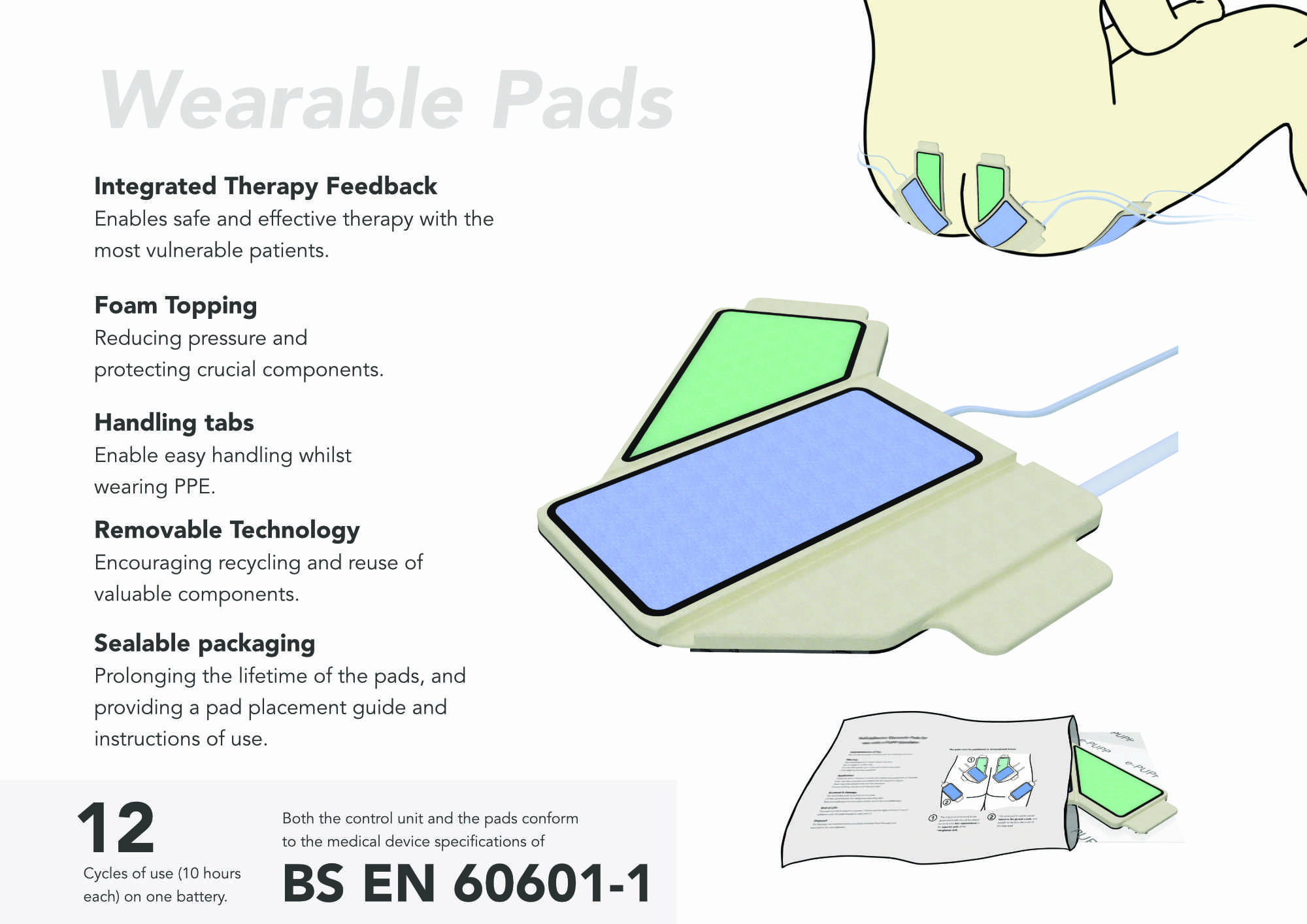 e-PUPP is a series of ergonomic wearable pads that stimulate areas of the body that are at high risk of developing pressure ulcers. The stimulation induces a range of physiological responses which reduce the risk of pressure ulcer development.